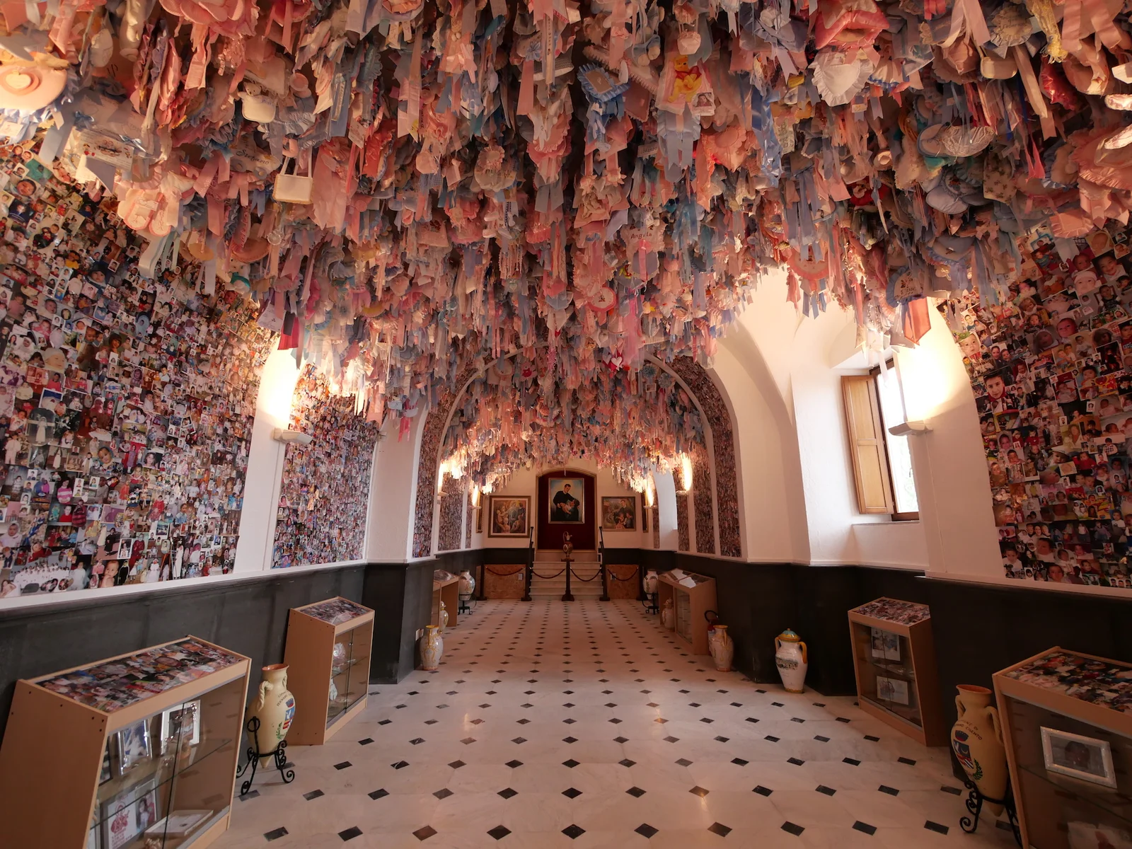 La sala dove sono visibili una serie infinita di foto e una collezione variopinta di fiocchi, con cui la gente ringrazia san Gerardo per il dono di una nuova vita.